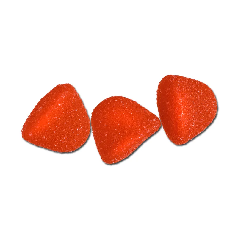 Socker; glukossirap; gelatin; syra: citronsyra; frukt- och växtkoncentrat: svart rättika, morot; aromämne. Kan innehålla spår av mjölk och vete. Förvaras svalt och torrt.
