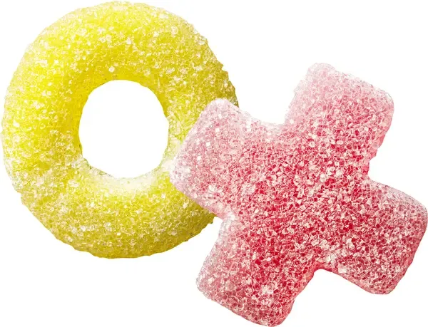 socker/sukker, glukossirap, vatten/vand, gelatin, syra (E270), naturliga aromer, koncentrat från (morot/gulerod, svarta vinbär/solbær), färgämne/farvestof (kurkumin)